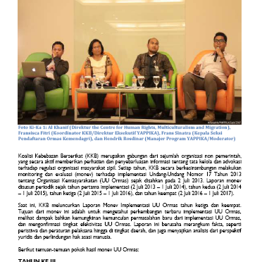 Siaran Pers Koalisi Kebebasan Berserikat (KKB) Tentang Laporan Monitoring dan Evaluasi Implementasi UU Ormas Tahun ke-III dan ke-IV