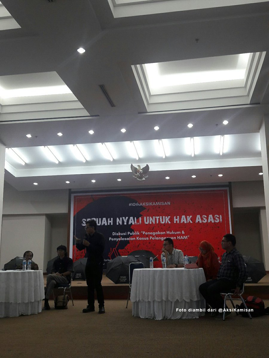 Beberapa poin di atas disampaikan oleh Miko Ginting, peneliti Pusat Studi Hukum dan Kebijakan Indonesia (PSHK) dan pengajar Sekolah Tinggi Hukum Indonesia Jentera (STHI Jentera), sebagai narasumber dalam diskusi ““Penegakan Hukum dan Penyelesaian Kasus Pelanggaran HAM Berat Masa Lalu: Sebuah Nyali untuk Hak Asasi”. Acara itu diselenggarakan pada Rabu, 18 Januari 2017 oleh Jaringan Solidaritas Korban untuk Keadilan (JSKK) sebagai peringatan 10 tahun Aksi Kamisan. Bertempat di Aula Komisi Yudisial-Jakarta, para aktivis, akademisi, tokoh masyarakat, pemerintah, hingga jurnalis berkumpul untuk meretas jalan penyelesaian pelanggaran berat HAM pada masa lalu.