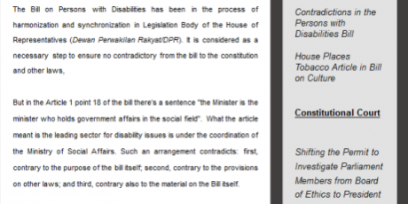 Several subjects could be studied from the new Constitutional Court decision. The Constitutional Court actually indirectly revives the essence of Article 220 of Law No. 27 Year 2009. During that time, there were fears that investigation processes will be slow because they needed approval from the President. Before the Constitutional Court Decision, the main concern is how members of the Board of Ethics would evaluate their peers’ performance. The concern itself still lingers in the air assuming the President could act in favor for members of his own party. Another matter that should be discussed further is the subject of mechanism approval itself, which the procedure still hasn’t decided on. (RW)