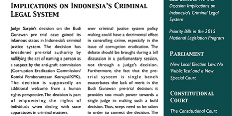 But aside from an appreciative point of view from a human rights perspective, Judge Sarpin’s decision raises concerns about the court’s appropriateness in making such decisions. The lack of deliberation between the effectiveness of the state to control crime as opposed to human rights protection in debate over criminal justice system policy making could have a detrimental effect in controlling crime, especially in the issue of corruption eradication. The debate should be brought during a bill discussion in a parliamentary session, not through a judge’s decision. Furthermore, the fact that the pre-trial system is single bench exacerbates the lack of merit in the Budi Gunawan pre-trial decision; it provides too much power towards a single judge in making such a bold decision. Thus, steps need to be taken in order to correct the decision. The KPK should appeal using a special mechanism so that the Supreme Court can correct the pre trial decision. Additionally, it is also important for the parliament to start the debate on the Criminal Procedural Code Bill and make it as a priority in order to update the existing Criminal Procedural Code. (GAT)