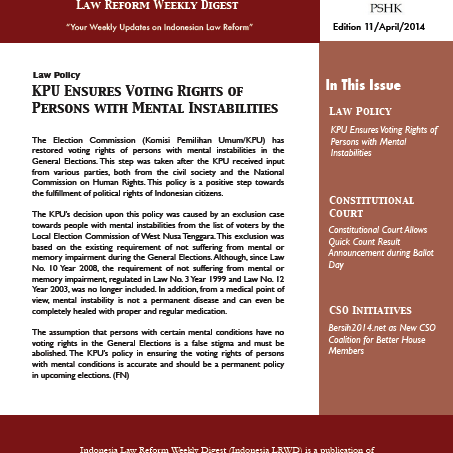 House of Representatives Initiating a New Law on Persons with Disabilities Post CRPD Ratification In 2011, Indonesia ratified the Convention on the Right of Person with Disabilities (CRPD) through Law No. 19 Year 2011. With this ratification, the Government has already shown a strong commitment towards fulfilling the rights of persons with disabilities as citizens.…