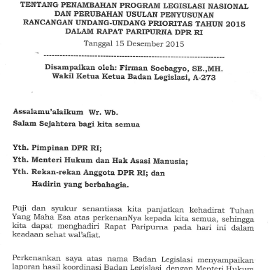 Des232015 Laporan Badan Legislasi tentang Penambahan Program Legislasi Nasional dan Perubahan Usulan Penyusunan RUU Prioritas Tahun 2015 dalam Rapat Paripurna Info Legislasi, PublikasiBy PSHK Read article