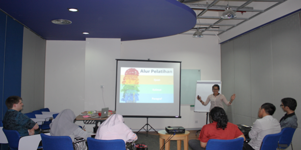 Seminggu sebelum pelatihan dimulai, para peserta sudah menyerahkan tulisan. Tulisan itu dijadikan bahan yang dilihat kembali secara bersama-sama sehingga peserta belajar dari hasil tulisannya sendiri. Diskusi bersama, pemberian contoh, dan pembuatan tulisan yang melibatkan setiap peserta membantu mereka mengingat materi yang diberikan.