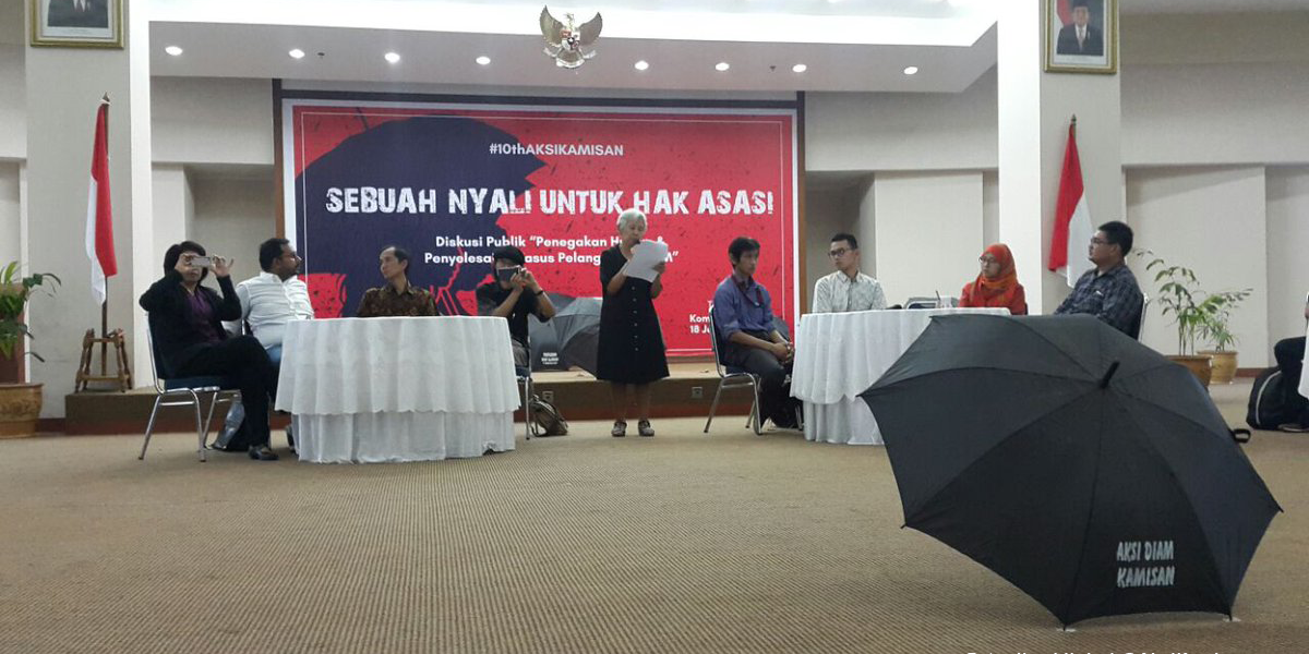 Beberapa poin di atas disampaikan oleh Miko Ginting, peneliti Pusat Studi Hukum dan Kebijakan Indonesia (PSHK) dan pengajar Sekolah Tinggi Hukum Indonesia Jentera (STHI Jentera), sebagai narasumber dalam diskusi ““Penegakan Hukum dan Penyelesaian Kasus Pelanggaran HAM Berat Masa Lalu: Sebuah Nyali untuk Hak Asasi”. Acara itu diselenggarakan pada Rabu, 18 Januari 2017 oleh Jaringan Solidaritas Korban untuk Keadilan (JSKK) sebagai peringatan 10 tahun Aksi Kamisan. Bertempat di Aula Komisi Yudisial-Jakarta, para aktivis, akademisi, tokoh masyarakat, pemerintah, hingga jurnalis berkumpul untuk meretas jalan penyelesaian pelanggaran berat HAM pada masa lalu.