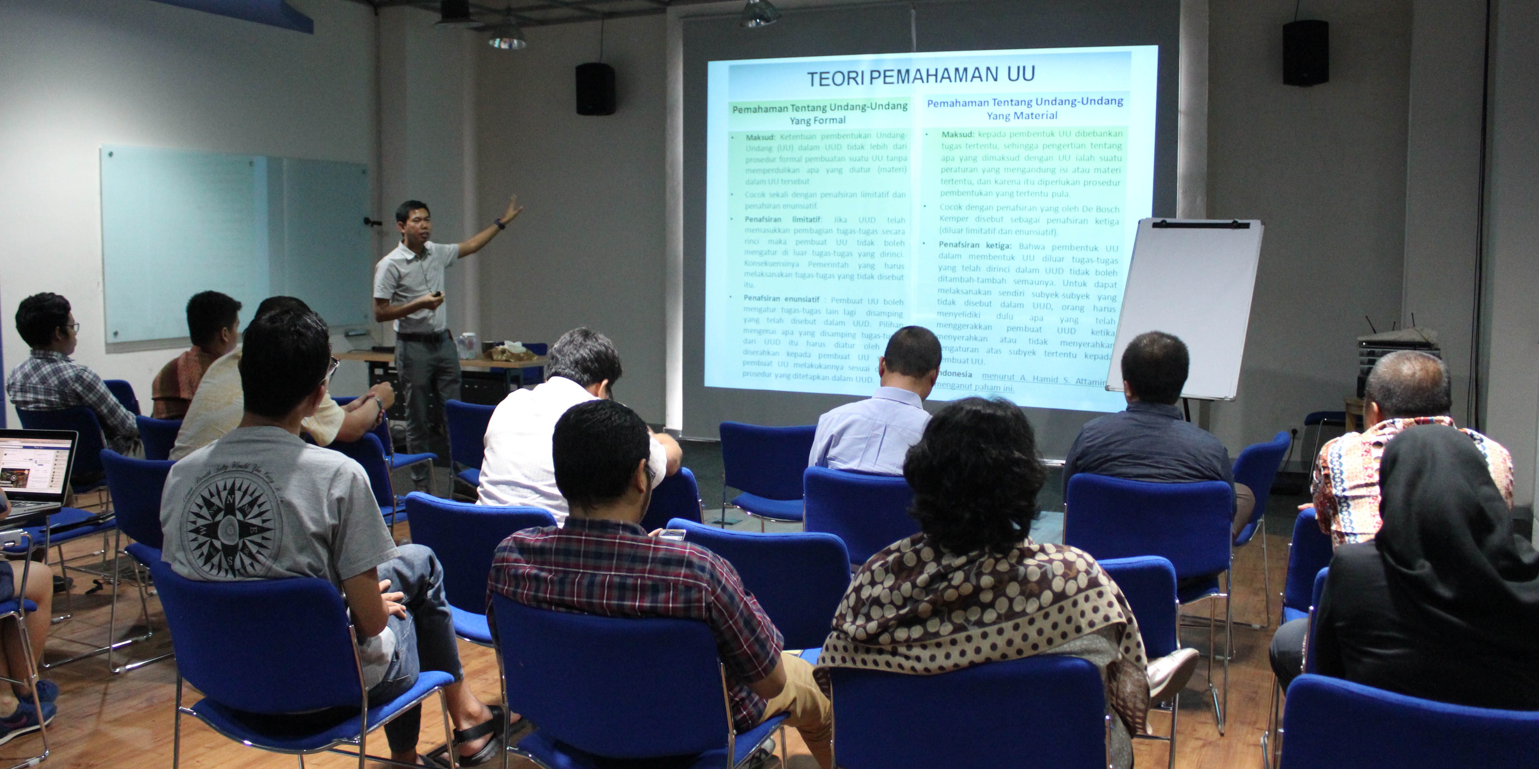Materi yang diajukan Bayu Dwi Anggono, Direktur Pusat Pengkajian Pancasila dan Konstitusi (Puskapsi) Fakultas Hukum Universitas Jember, dibagi menjadi tiga bagian, yaitu (i)kondisi faktual kualitas undang-undang di Indonesia, (ii)tantangan pembentukan undang-undang, dan (iii)rekomendasi untuk menghadapi tantangan pembentukan undang-undang. Pertanyaan pemantik yang diajukan kemudian adalah apakah semua hal perlu diatur (oleh dan selevel) undang-undang? Sebagai contoh, dalam UU No. 36 Tahun 2009 tentang Kesehatan Pasal 151, disebutkan bahwa “Ketentuan lebih lanjut mengenai upaya kesehatan jiwa diatur dengan Peraturan Pemerintah”. Namun, justru muncul UU No. 18 Tahun 2014 tentang Kesehatan Jiwa. Itu adalah gejala atau peristiwa hukum yang masih sering terjadi: tidak ada batasan materi muatan dalam pembentukan undang-undang.
