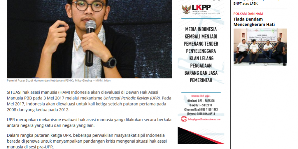 Dalam rangka putaran ketiga UPR, beberapa perwakilan masyarakat sipil Indonesia berada di Jenewa untuk menyampaikan pandangan kritis mengenai situasi hak asasi manusia di sesi pra-UPR.