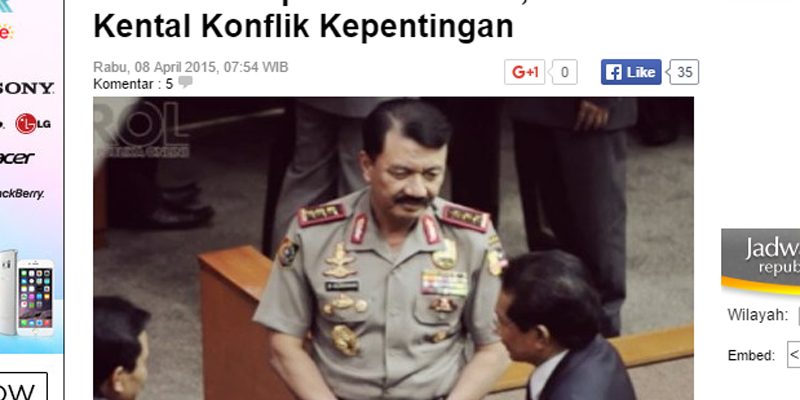 Keraguan itu disampaikan peneliti pada Pusat Studi Hukum dan Kebijakan (PSHK) Indonesia Miko Susanto Ginting. Menurut Miko, setidak-tidaknya konflik kepentingan akan terbuka lebar apabila Kepolisian menangani kasus Komjen (Pol) Budi Gunawan.
