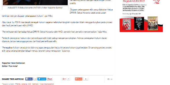 “Dugaan pelanggaran etik yang dilakukan Ketua DPR-RI, Setya Novanto sejak awal sudah beririsan dengan dugaan pelanggaran hukum,” ujar Miko.