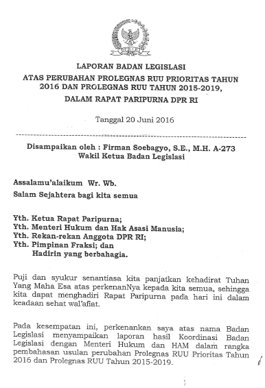 Jun212016 Laporan Badan Legislasi Atas Perubahan Program Legislasi Nasional Rancangan Undang-Undang Prioritas Tahun 2016 dan Program Legislasi Nasional Rancangan Undang-Undang Tahun 2015-2019 Info Legislasi, PublikasiBy PSHK21/06/2016 2:41 PM Details