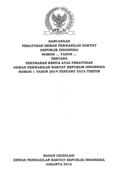 Jun212016 Naskah Rancangan Peraturan DPR RI tentang Perubahan Kedua Atas Peraturan DPR RI Nomor 1 Tahun 2014 tentang Tata Tertib Berdasarkan Pembicaraan Tingkat II/Pengambilan Keputusan di Rapat Paripurna Info Legislasi, PublikasiBy PSHK21/06/2016 2:46 PM Details