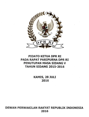 Agu22016 Naskah Pidato Ketua DPR pada Rapat Paripurna Penutupan Masa Sidang V Tahun Sidang 2015-2016 Info Legislasi, PublikasiBy PSHK02/08/2016 3:52 PM Details