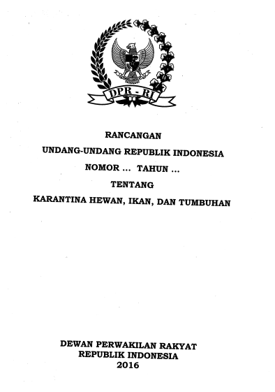 Mar162016 Naskah Rancangan Undang-Undang Usul DPR tentang Karantina Hewan, Ikan, dan Tumbuhan Info Legislasi, PublikasiBy PSHK16/03/2016 3:48 PM Details