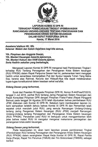 Mar182016 Laporan Komisi XI terhadap Rancangan Undang-Undang tentang Pencegahan dan Penanganan Krisis Sistem Keuangan dalam Rapat Paripurna Info Legislasi, PublikasiBy PSHK18/03/2016 4:47 PM Details