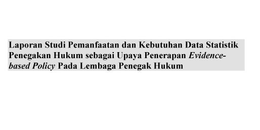 Sejak diterbitkannya Buku Statistik Penegakan Hukum 2007 dan 2008 pada 2010 lalu, belum diketahui bagaimana pengaruh atau dampak penerbitan buku itu dalam mendorong pemanfaatan data statistik oleh lembaga penegakan hukum dalam pengambilan kebijakan yang berbasis evidence dan oleh masyarakat terkait dengan kebutuhan pemanfaatannya. Melalui kegiatan studi ini, tingkat pengaruh buku tersebut bisa diketahui begitupun juga mengenai kebutuhan utama lembaga penegakan hukum dan masyarakat akan data-data ini juga bisa tergambarkan.