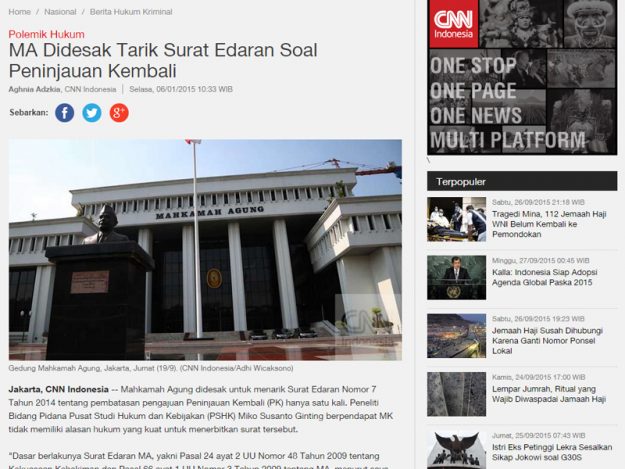 “Pengadilan di tingkat bawah akan ragu mengajukan PK atau tidak. Jaksa juga ragu. Yang paling menjadi korban sebenarnya hakim. Kalau ada permohonan PK, kalau tidak meneruskan ke MA maka dia melanggar UU KUHAP dan putusan MK sehingga dia bisa tergancar kode etik,”