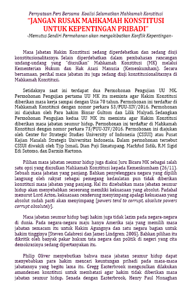 Setya Novanto (kembali) Menjadi Ketua DPR, Moralitas dan Wibawa DPR Terancam Merosot Kabar mengejutkan datang dari Dewan Pimpinan Pusat Partai Golkar. Partai tersebut mengusulkan kembali Setya Novanto menjadi Ketua Dewan Perwakilan Rakyat (DPR) RI untuk menggantikan Ade Komaruddin. Terdapat dua alasan yang melatarbelakangi usulan tersebut. Pertama, adanya putusan Mahkamah Konstitusi (MK) atas uji materi Pasal…